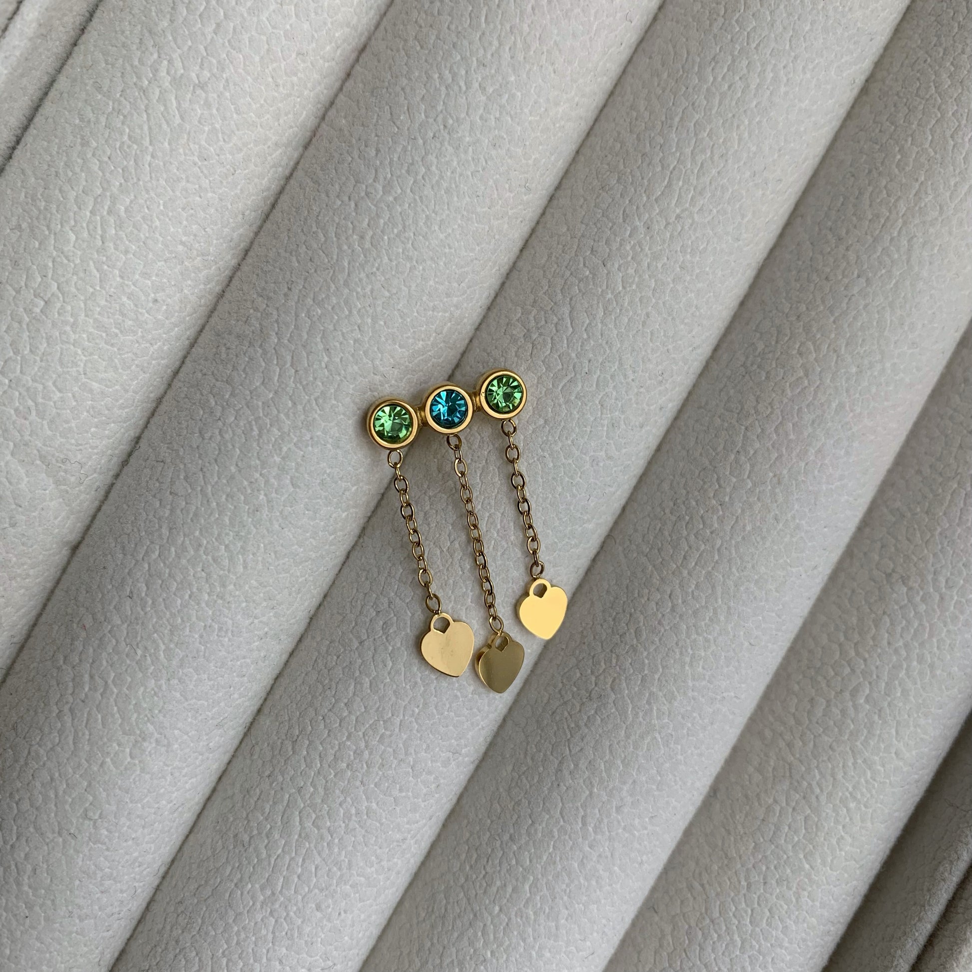 HEARTS STONES STUD (Blu e verde) - Acciaio inossidabile