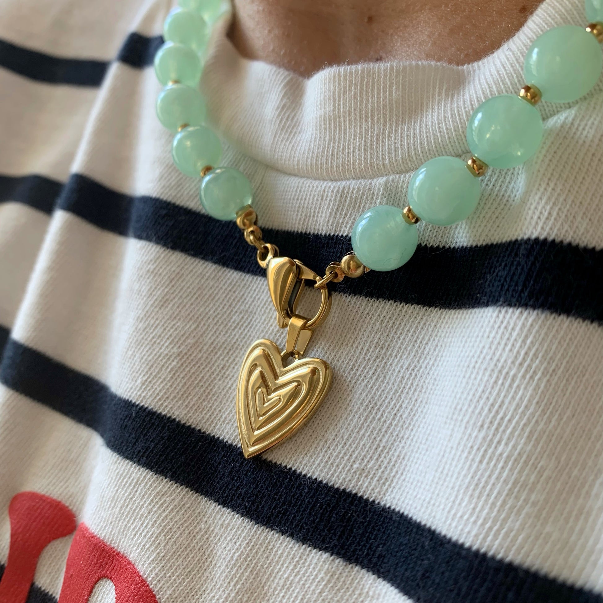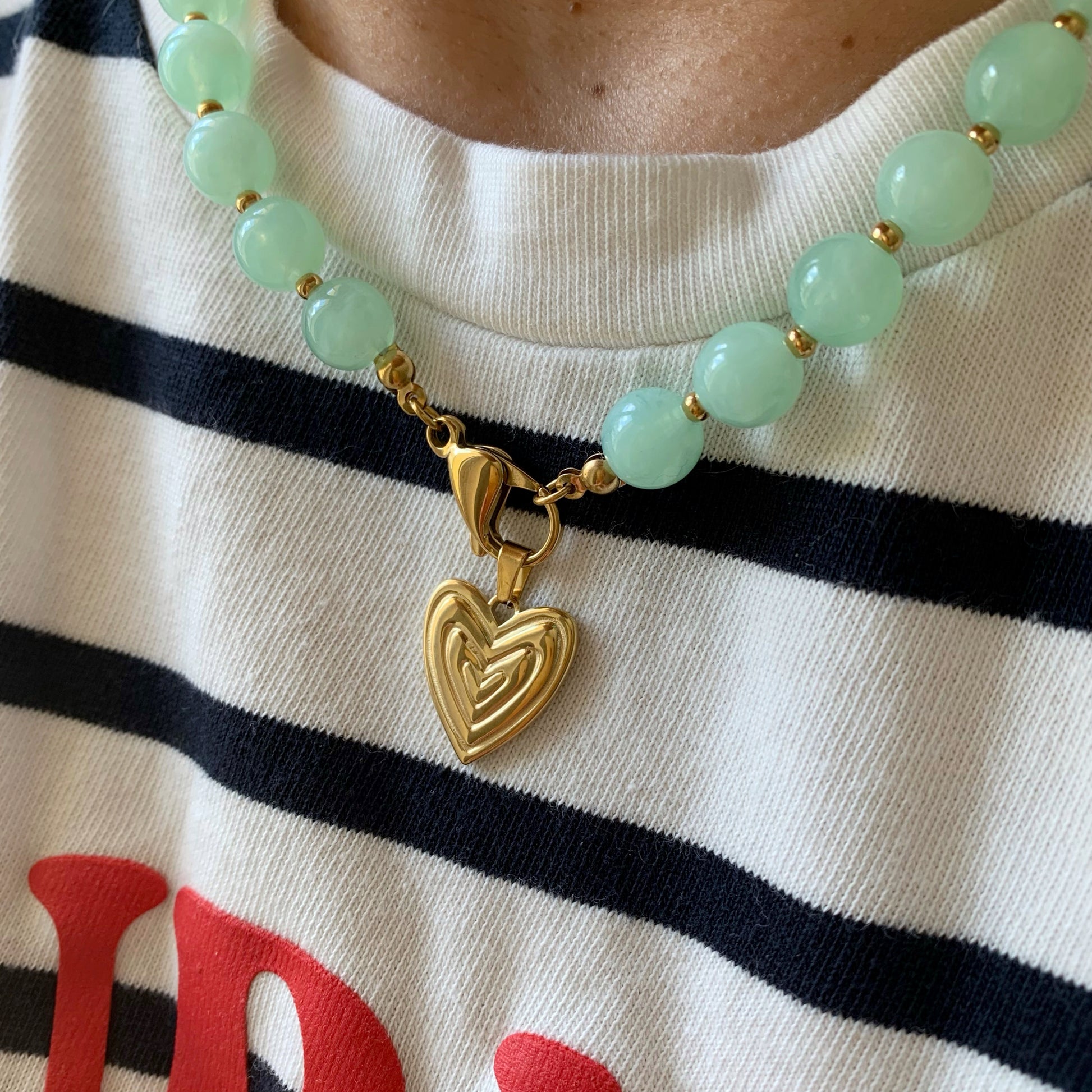 Al centro, un ciondolo a forma di cuore – simbolo sobrio ma profondo – aggiunge un tocco di grazia e sentimento, senza eccessi. Il moschettone ovale, dal design pulito, completa il tutto con discreta raffinatezza.